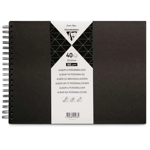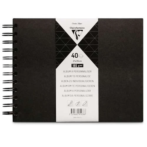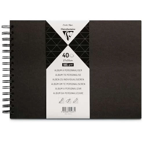 Album à personnaliser contenant 40 feuilles de papier noir 185 g/m². Couverture rigide noire. Ouverture à plat. Album à personnaliser selon vos inspirations.