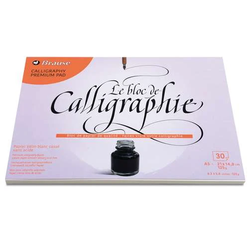 Le bloc Vélin Brause est idéal pour tous les travaux de calligraphie. Son toucher d’une très grande douceur pour le vrai plaisir des calligraphes.