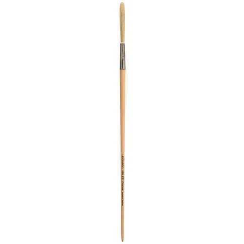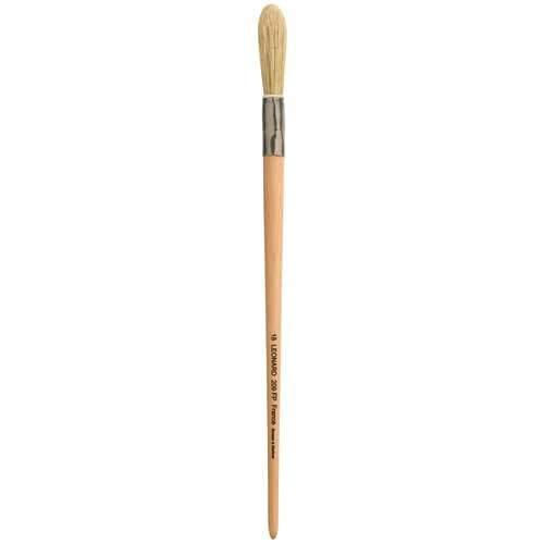 - Pointe ronde à bout bombé en soies de porc, lien inox, manche long en bois brut.