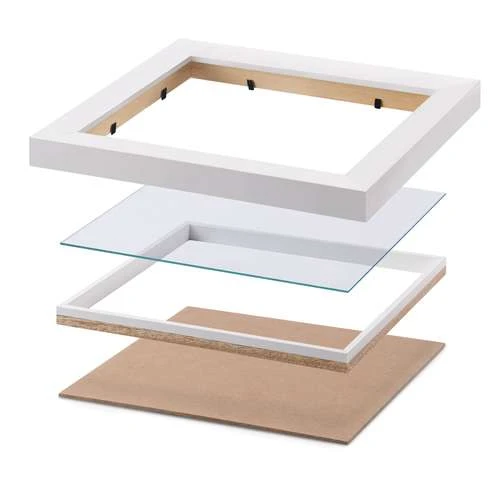 Encadrez et mettez en valeur vos réalisations en 3D. Un incroyable effet de profondeur et de respiration également pour vos oeuvres en 2D. Vous bénéficierez ainsi d’un espace entre le fond du cadre et le verre de 13 mm. Pliage, collage en volume, peinture à fort relief, vous pourrez enfin mettre en valeur sous un verre de protection vos créations qui ne pouvaient être encadrées dans un cadre classique.