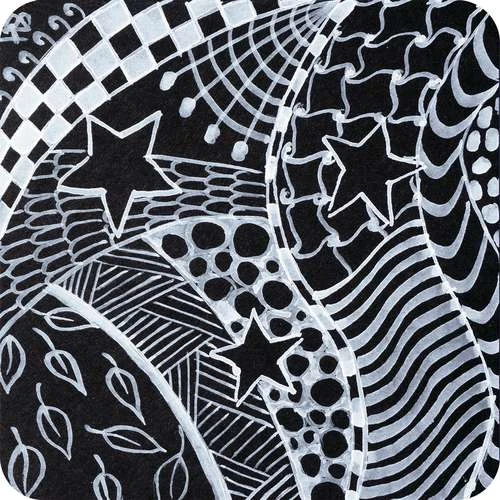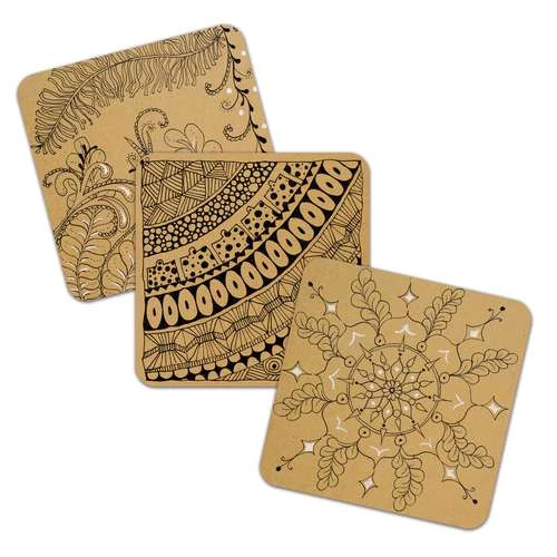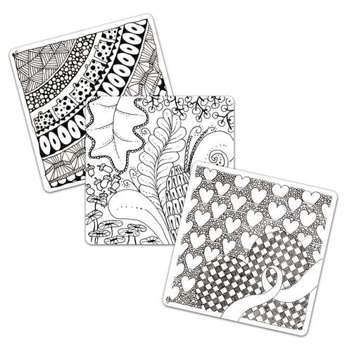 Les cartes aux coins arrondis sont des supports pour le zentangle, la technique de relaxation consistant à créer des motifs répétitifs. Paquet de 50 cartes. Dimensions 8,9 x 8,9 cm. Non imprimées. Lisses. Coins arrondis.