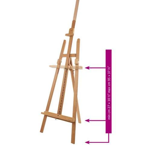 Le chevalet Mabef à lyre est adapté aux expositions intérieures et au travail avec des peintures à l’huile et à l’acrylique. Pour châssis de taille moyenne jusqu’à 1,25 m.