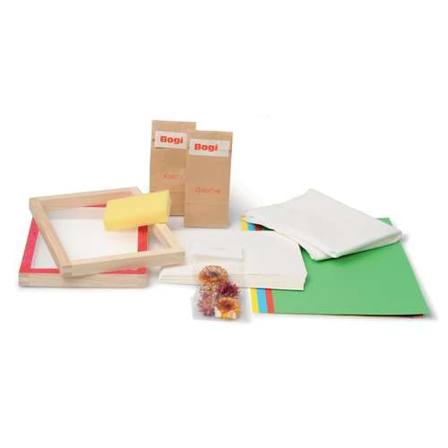 Tout le matériel fondamental pour la fabrication de papier est proposé dans ce remarquable coffret, de quoi fabriquer 100 feuilles de formats A5.