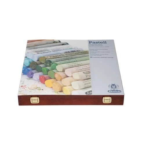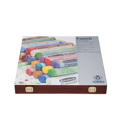 Coffret de 45, 60, 100, 200 ou 400 pastels secs extra-tendres Schmincke. Les pastels sont rangés dans un présentoir en mousse qui les protège parfaitement. Coffret en bois teint noyer et aux fermetures en laiton : une présentation noble et soignée.