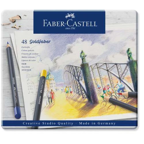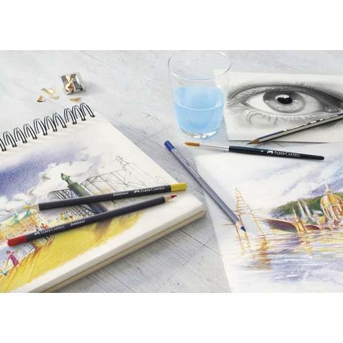Le matériau de qualité garantit une résistance maximale au bris, une excellente résistance à la lumière et à l’eau ainsi que des couleurs éclatantes. La mine du crayon de couleur Goldfaber s’adapte à la technique de chacun. Les crayons Goldfaber peuvent être utilisés sur quasiment toutes les surfaces rigides.