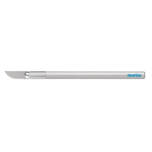 A la différence du n° cde 21205, ce couteau stylet Martor-boy est équipé de lames à bord inférieur semi-arrondi (voir photo). Couteau en forme de crayon pour coupes précises.