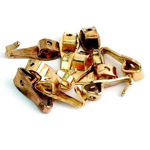 Crochets en fer laitonné. Livrés avec : 10 épingles en acier à tête laiton inarrachables.