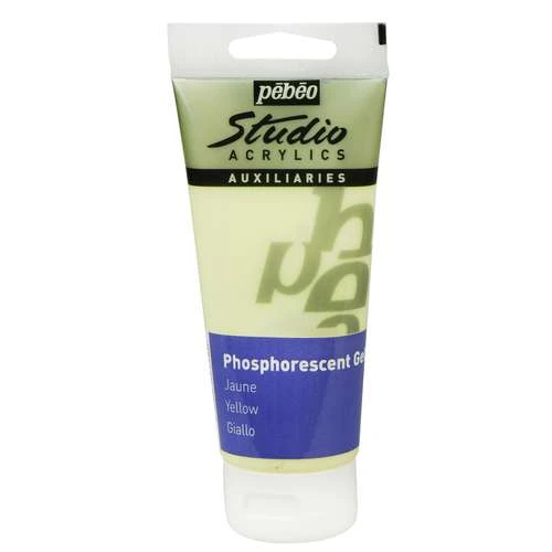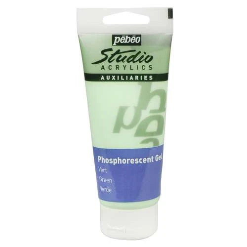 Gel phosphorescent Pébéo : il absorbe la lumière et la restitue dans l’obscurité. Gel Studio Acrylics pour vos créations à l’acrylique. 5 couleurs au choix en tube de 100 ml.