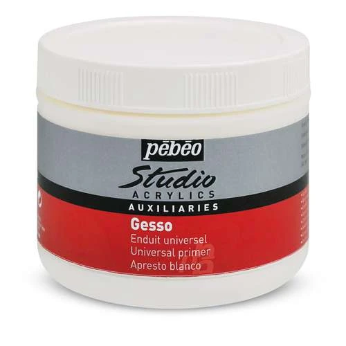 Le Gesso Studio de Pébéo est un apprêt blanc opaque pour la préparation de tous les supports. Il sèche rapidement et présente une surface mate qui améliore l’accroche des couches de peinture.