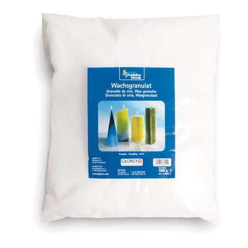 Granulés de cire en pastille. A base de paraffine. Point de fusion : 54°C. Peut être teinté dans la masse. Spécialement conçus pour la fabrication.