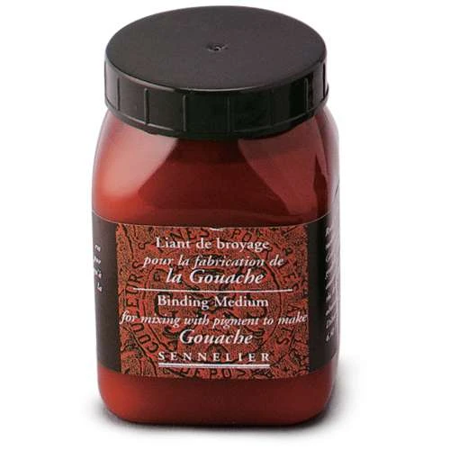 Liant de broyage pour gouache qui donne avec les pigments un aspect gélifié mat et opaque et donne un film soluble dans l’eau. Préparation à base de gomme, colle naturelle et glycérine, eau, conservateur.