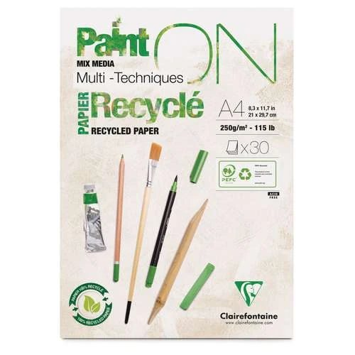 Le papier Paint’On Recyclé est un papier cellulose extra-blanc adapté aux techniques mixtes. En tant que papier multi-techniques, le Paint’On convient aux différentes techniques humides et sèches des Beaux-Arts.