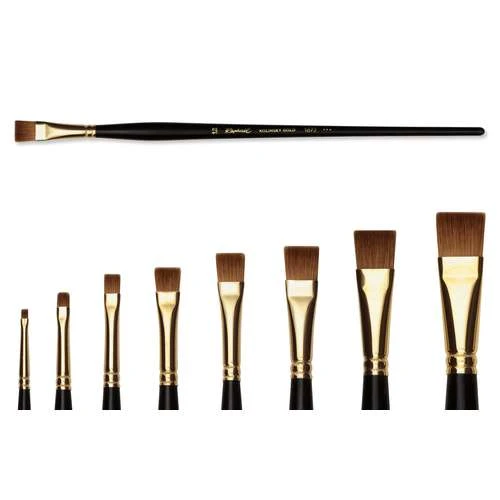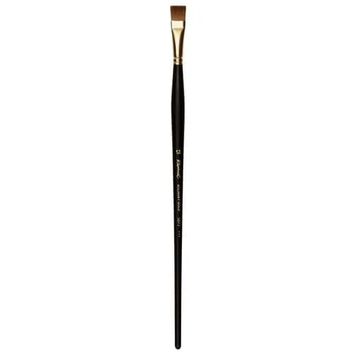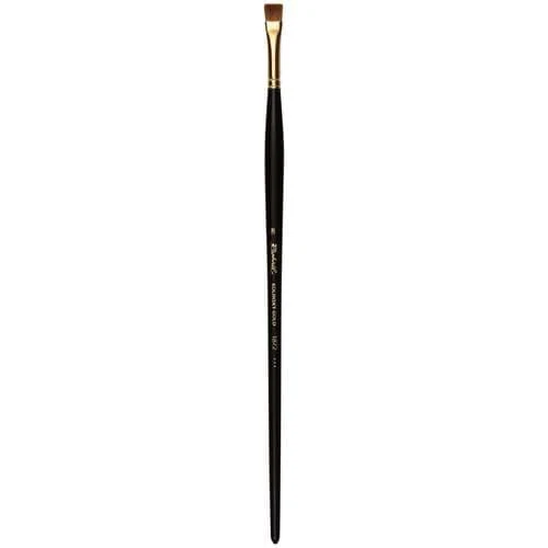 Le pinceau pointe plate courte série 1872 est idéal pour les mélanges, fondus et premières couches. Pointe plate courte en martre Kolinsky. Virole en laiton doré. Manche long laqué noir.