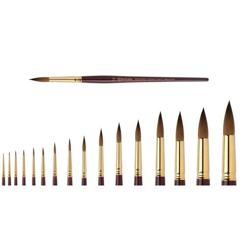 Poils naturels offant une capacité de réserve extraordinaire. Vous serez subjugués par leur souplesse et leur nervosité pour vos réalisations à l’aquarelle.