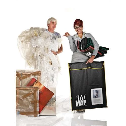 Pochette Biyomap, la solution idéale pour remplacer la bulle en plastique. Dans le monde de l’art on utilise 150 000 rouleaux de bulle en plastique, source de déchets et de pollution.