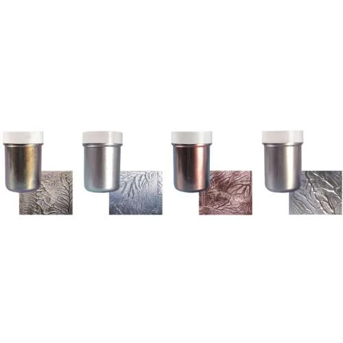 La cire liquide lie le pigment. La lumière qui pénètre les couches profondes de la cire donne des reflets irisés à votre peinture. La poudre magique est conditionnée dans des pots facilement refermables.