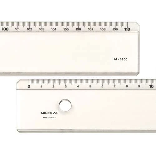 La Règle Minerva à deux biseaux est en acrylique transparent de haute qualité.