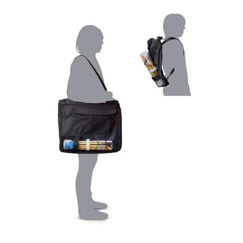 Vous pourrez ainsi transporter facilement vos cartons à dessins, mais aussi vos rouleaux grâce à un système de porte-tube sur le devant du sac.