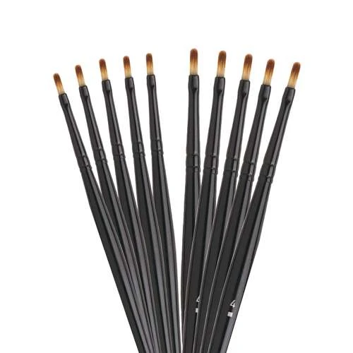 Ce set de 10 brosses imitation mangouste pointe usée bombée est parfait pour l’acrylique mais également à l’huile diluée.