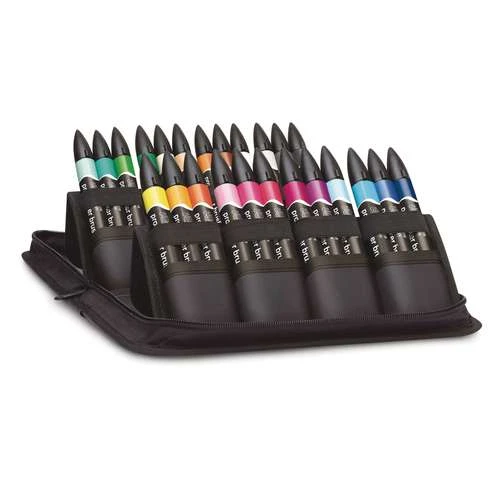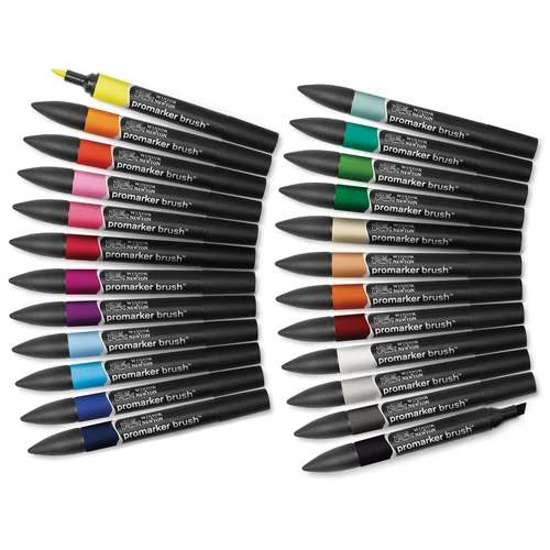 Les marqueurs Promarker Brush de Winsor & Newton sont dotés d’une toute nouvelle pointe pinceau polyvalente : composée de deux matériaux très résistants, qui apporte au marqueur une précision et un contrôle du tracé inégalés. Les marqueurs Promarker Brush™ contiennent la même encre à base d’alcool et de colorants que les marqueurs Promarker, offrant une finition impeccable, sans trace.