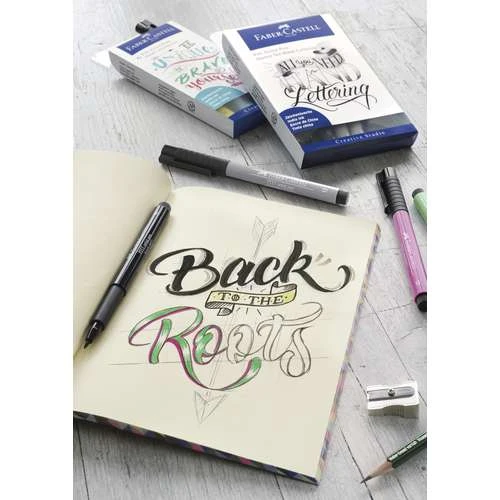 Le set initiation Hand Lettering contient tout ce dont vous avez besoin pour démarrer votre apprentissage du Hand Lettering : un crayon graphite pour les esquisses, les feutres fins Pitt Artist Pen pour réaliser les contours, les détails les plus fins et également les feutres Pitt Artist Pen avec une pointe pinceau (Brush) pour réaliser le lettering.