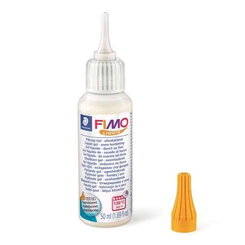 Le gel fluide Fimo transparent et flexible, durcit au four à 130°C. Le gel fluide Fimo peut être mélangé à des couleurs à l’huile ou pigments. Il peut également être utilisé pour le transfert de dessins, photocopies en noir et blanc ou couleur, ou pour fomrer une couche de protection étanche sur vos créations en pâte Fimo.