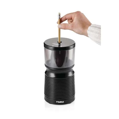 Taille-crayon électrique de grande qualité pour des résultats professionnels : le taille-crayon 210 de DAHLE® travaille avec une grande précision et reste facile à manier. Les ventouses en dessous de l´appareil assure une position stable. Le bac de réception transparent au grand volume receuille les copeaux des crayons taillés. La place de travail reste propre, le bac se retire et se vide facilement.