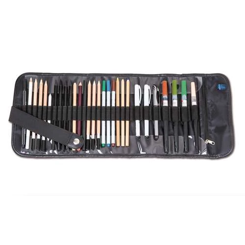 Cette trousse de rangement convient pour votre matériel d’artiste comme le crayon à papier, le crayon à dessin, le feutre, le marqueur, le porte-plume, le cutter, l´estompe, etc.