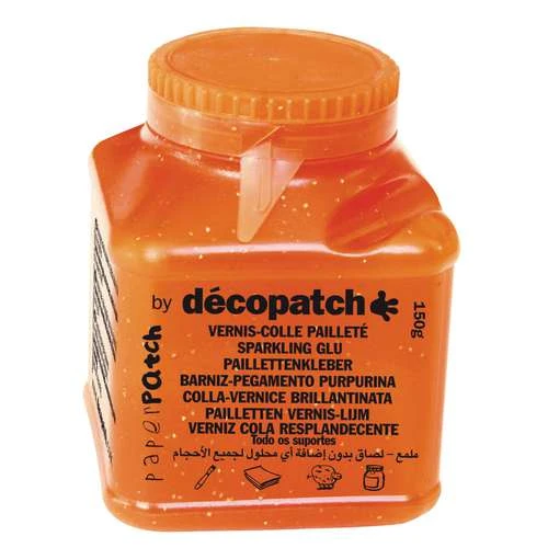 Vernis colle pailleté : Pour vernir votre décoration en papier Décopatch en lui donnant un effet pailleté scintillant.